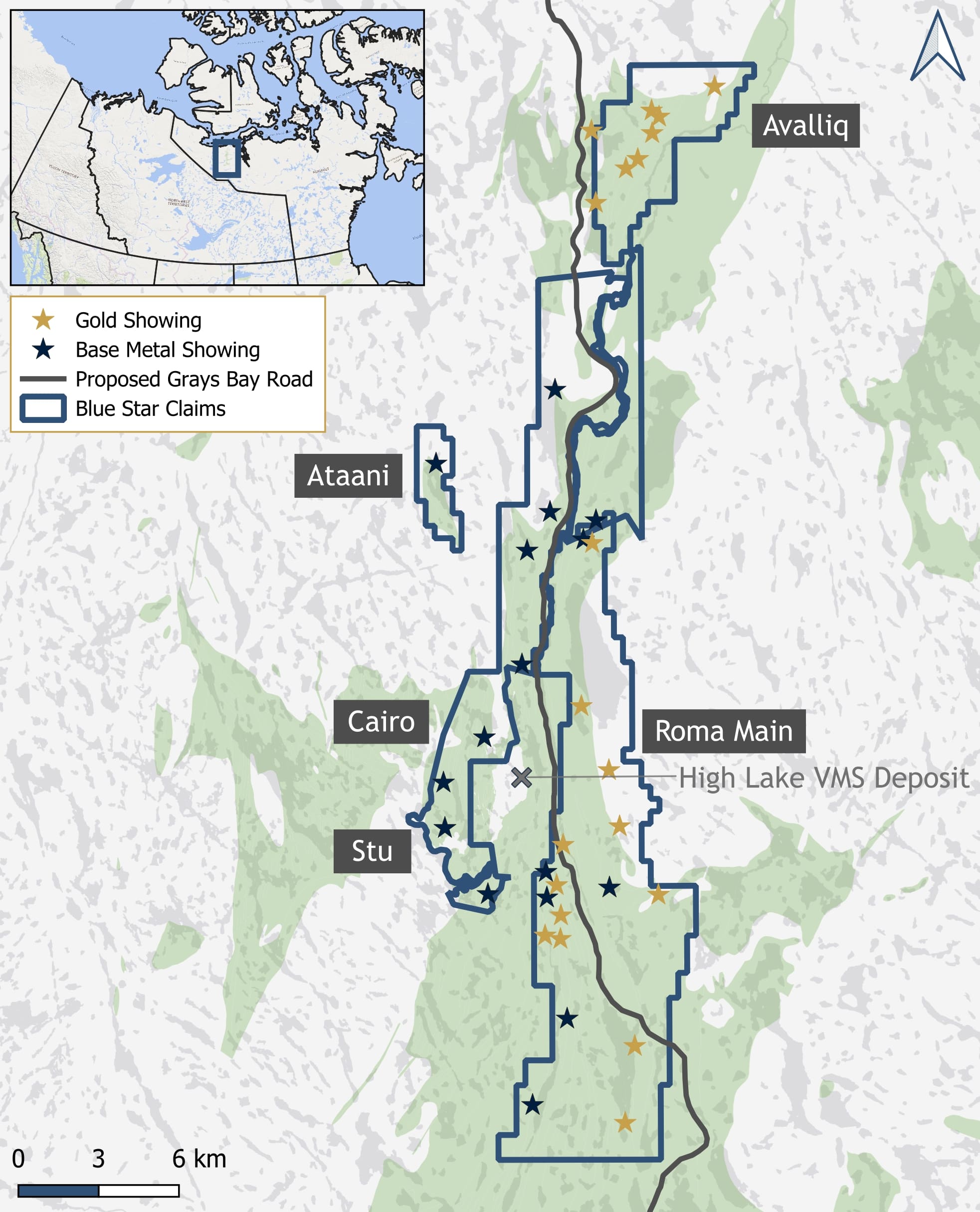 The Roma Project encompasses ~18,900 hectares of the northern High Lake Belt, covering several high grade gold and critical mineral showings.