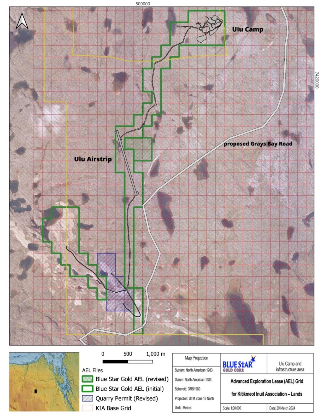 KIA President Bobby Greenley states, "The KIA Board is pleased with the completion of the AEL for the Ulu Project with Blue Star. The AEL provides more certainty with respect to the reporting and monitoring for the KIA. If Blue Star continues to achieve success in its development of the Ulu Project, it will also benefit Kitikmeot Inuit."